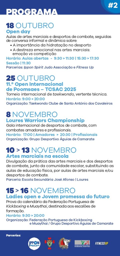 8 de novembro - Loures Warriors Championship - Gala internacional de desportos de combate, com combates amadores e profissionais.