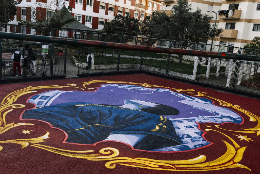 No centro da intervenção destaca-se a figura de uma mulher residente do bairro, símbolo das gerações que acompanharam a evolução da comunidade e que continuam a dar vida ao espaço. “Nesta obra está representada uma mulher que, como residente deste local, também viu o bairro crescer”, explica.