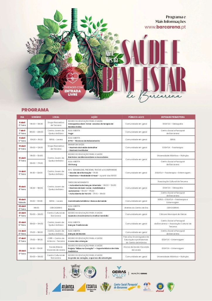 Ao longo de quase um mês, a população poderá participar gratuitamente em várias atividades que vão desde palestras informativas e sessões de sensibilização a workshops práticos, rastreios de saúde, aulas abertas e momentos educativos. A programação inclui ainda uma caminhada solidária.