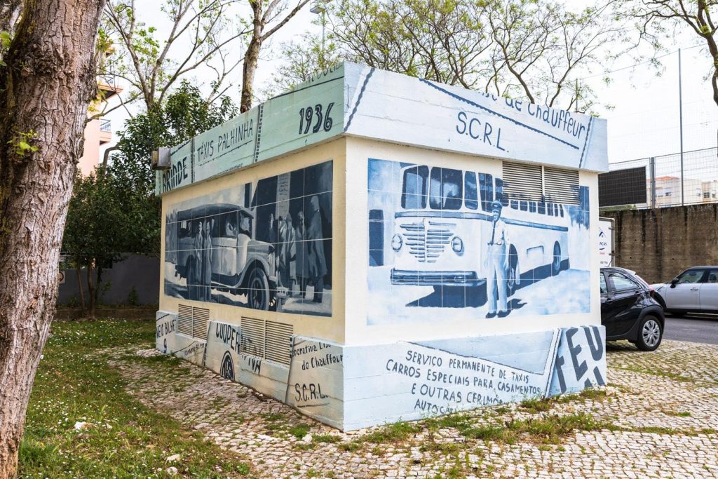 Criados em abril de 1925 pela Cooperativa Lisbonense de Chauffeurs, os Táxis Palhinha distinguem-se pelo seu revestimento característico em palha entrançada, que forrava a cabina dos passageiros e deu origem ao seu nome. Ao longo de décadas, tornaram-se uma imagem de marca na região, sendo agora recordados através desta intervenção artística.