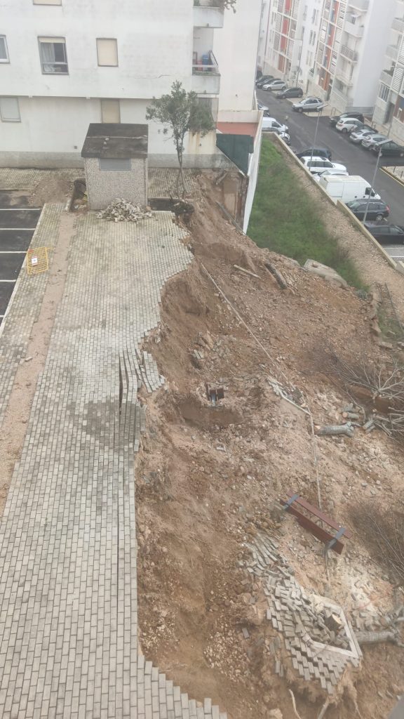 De acordo com a informação disponível, não há registo de feridos, mas a derrocada expôs infraestruturas subterrâneas e afetou a estabilidade da área envolvente, incluindo uma árvore e uma zona técnica próxima ao edifício. A área poderá vir a ser alvo de avaliações técnicas e eventuais restrições de acesso, por motivos de segurança.
