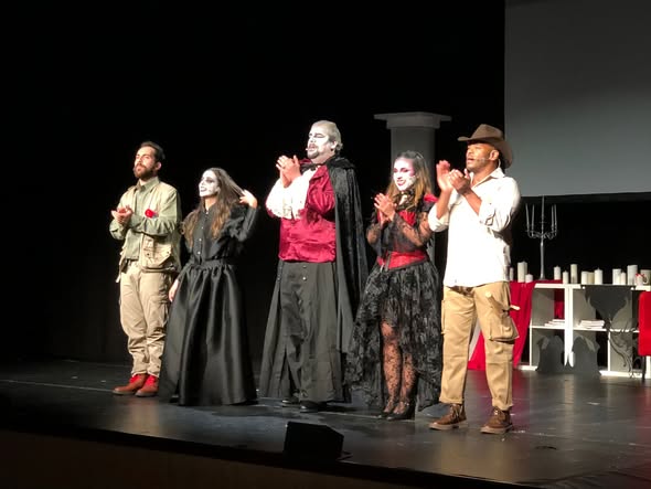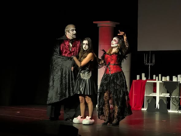 Terror e diversão misturados numa peça de teatro, onde o assustador conde Drácula se revela uma personagem… cómica. O Grupo TEMA - TEATRO MAFRA estreou a sua nova produção infantil “𝗗𝗿𝗮́𝗰𝘂𝗹𝗮 𝗲 𝗮 𝗟𝘂𝗮 𝗱𝗲 𝗦𝗮𝗻𝗴𝘂𝗲”, no 𝗔𝘂𝗱𝗶𝘁𝗼́𝗿𝗶𝗼 𝗠𝘂𝗻𝗶𝗰𝗶𝗽𝗮𝗹 𝗕𝗲𝗮𝘁𝗿𝗶𝘇 𝗖𝗼𝘀𝘁𝗮, 𝗲𝗺 𝗠𝗮𝗳𝗿𝗮. A peça viaja atá à 𝗖𝗮𝘀𝗮 𝗱𝗲 𝗖𝘂𝗹𝘁𝘂𝗿𝗮 𝗝𝗮𝗶𝗺𝗲 𝗟𝗼𝗯𝗼 𝗲 𝗦𝗶𝗹𝘃𝗮 (𝗘𝗿𝗶𝗰𝗲𝗶𝗿𝗮), nos próximos dias 𝟲, 𝟳, 𝟭𝟯 𝗲 𝟭𝟰 𝗱𝗲 𝗱𝗲𝘇𝗲𝗺𝗯𝗿𝗼. As sessões realizam-se às 15h30 dos dias 6 e 13 (sábados) e às 11h00 dos dias 7 e 14 (domingos).