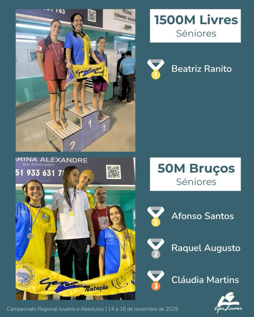 O GesLoures conquistou 52 pódios no Campeonato Regional de Juvenis Absolutos que se realizou na piscina do Sport Algés e Dafundo, no passado fim-de-semana. Numa competição que contou com a presença de 325 nadadores e 23 clubes, a GesLoures foi representada por 27 atletas, que, fruto de um conjunto de provas de grande qualidade conquistaram 52 pódios, (com 16 medalhas de Ouro, 18 medalhas de prata e 18 medalhas de bronze), bateram recordes Absolutos do Clube e atingiram várias marcas que permitem acesso aos exigentes Campeonatos Nacionais.