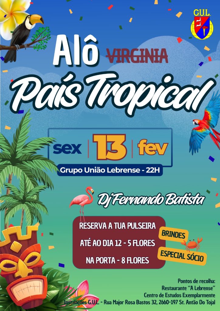 O Carnaval está a chegar ao Grupo União Lebrense, em Santo Antão do Tojal, Loures, no dia 13 de fevereiro com uma festa cheia de cor, música e boa disposição que promete transformar o espaço num país tropical.