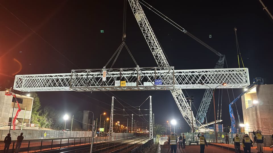 A estrutura metálica da nova Passagem Superior do Dafundo será elevada, na noite deste sábado para domingo, e assente nos apoios definitivos. O acontecimento decorre sob uma complexa operação de engenharia de alta precisão, para concretizar a ligação pedonal entre a Alameda Hermano Patrone e o Passeio Marítimo de Algés. Devido à dimensão da manobra, o processo implicará o corte total da circulação na Avenida Marginal e na Linha de Cascais, com o intuito de garantir a máxima segurança de todos os envolvidos.