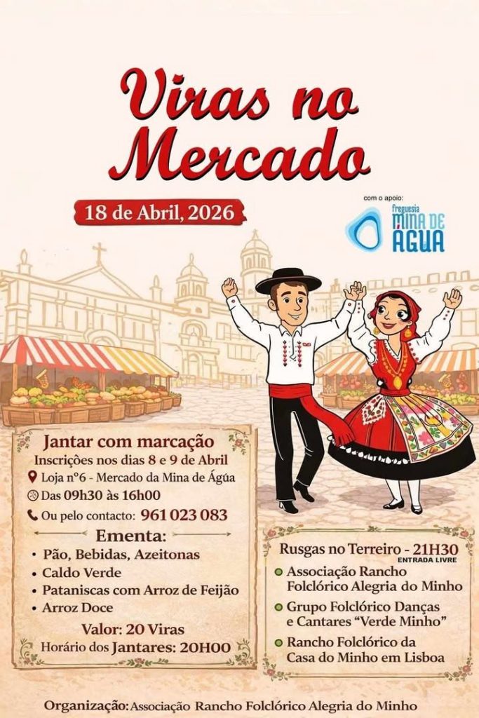 O Mercado da Mina de Água prepara-se para uma noite dedicada às tradições do Minho no próximo dia 18 de abril de 2026, com um programa que combina gastronomia, música e convívio.