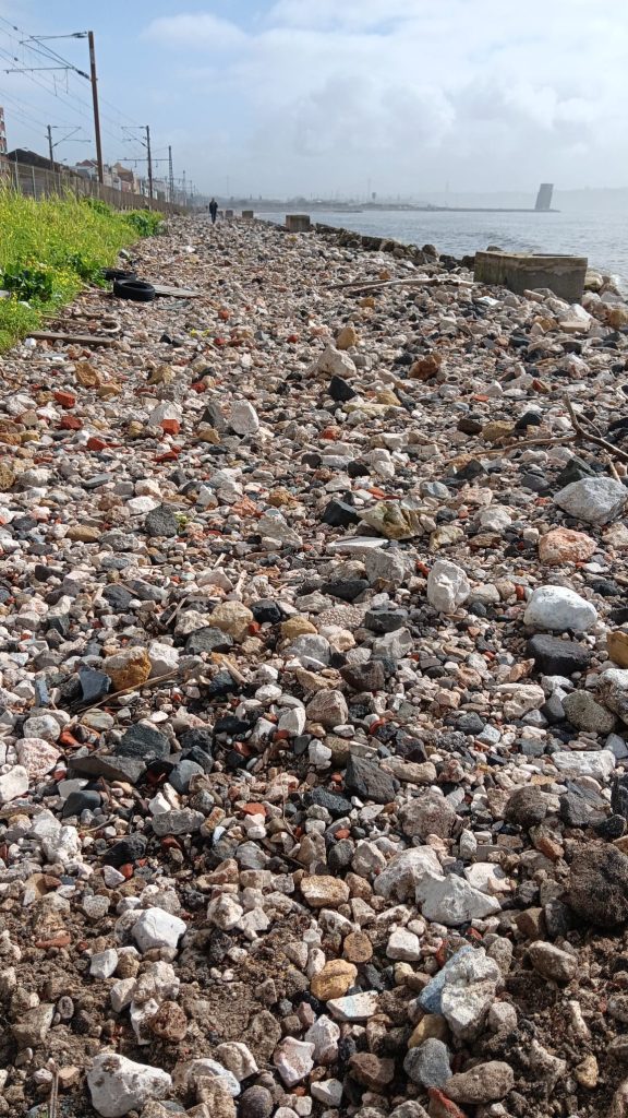 Ao longo da nossa caminhada, passamos por um ou outro aventureiro, mas são manifestamente poucos, aliás, muito poucos os que se atrevem a desafiar as margens onde fúria do mar bate, indiferente às mossas que está a provocar na costa de Oeiras... e do continente. O choque das revoltas águas contra o passeio assustam, metem um respeito tremendo, mesmo com a maré baixa… Somos tolhidos por um sentimento de tristeza, de impotência, este passeio paradísico está transformado numa amálgama de betão, ferros, plásticos, enfim tudo aquilo que o Homem lançou e o mar acabou por nos devolver…
