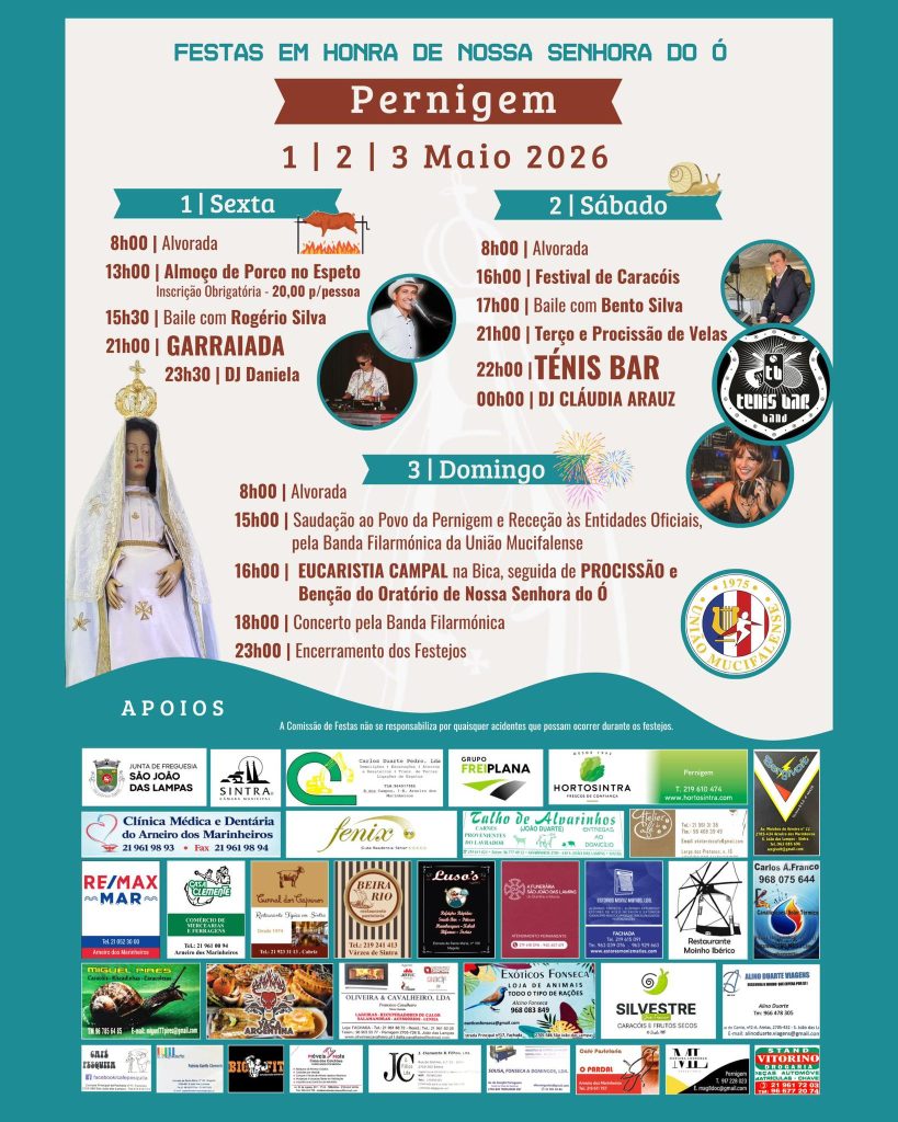 A localidade de Pernigem, na freguesia de São João das Lampas, volta a celebrar as tradicionais Festas em Honra de Nossa Senhora do Ó nos dias 1, 2 e 3 de maio.