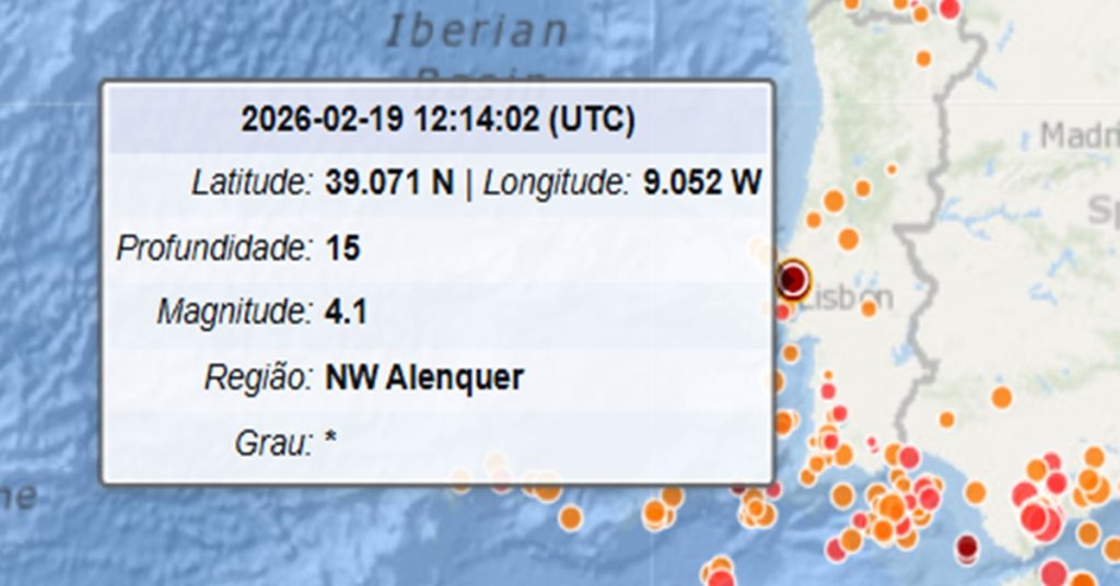 Dois sismos de magnitude 4,1 na escala de Richter foram sentidos na área da Grande Lisboa (e não só), ao início da tarde desta quinta-feira. De acordo com o Centro Sismológico Euro-Mediterrânico o primeiro tremor de terra foi registado às 12h14 e o segundo, dois minutos depois, com a mesma intensidade, às 12h16. O epicentro aconteceu a cerca de quatro quilómetros a Oeste-Noroeste de Alenquer e a cerca de 23 km de Mafra, informou o Instituto Português do Mar e da Atmosfera (IPMA).