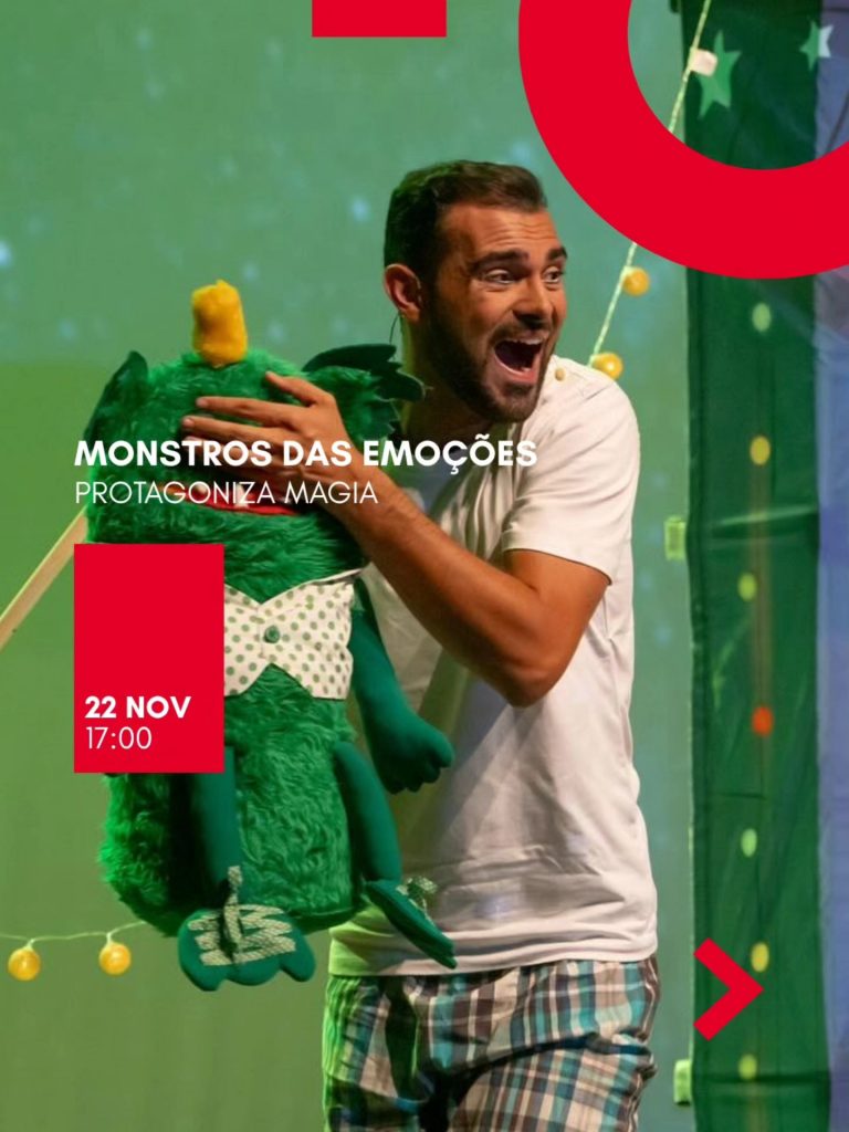 Segue-se no dia 22 de novembro, às 17h, a apresentação de “Monstros das emoções”, do grupo Protagoniza Magia, e no dia seguinte é a vez dos Rodpio d’ideias subirem a palco com “O Fado de Ulisses”.